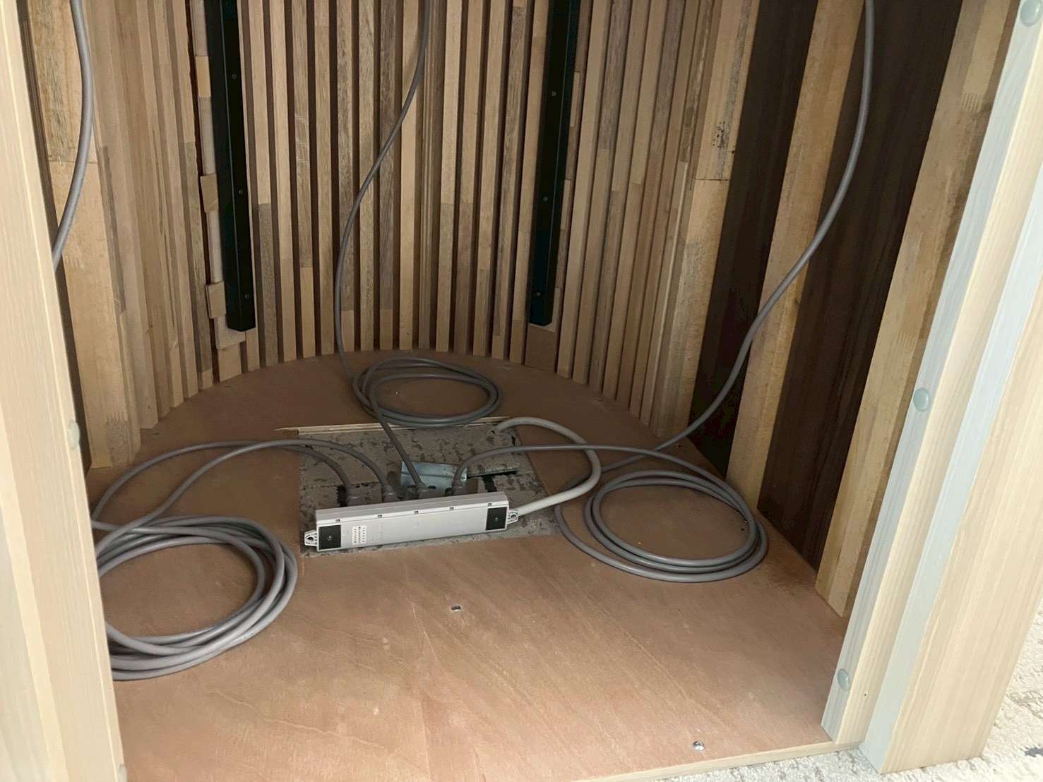 先日、1フロアで家具コンセントを30個ほど造作什器に取り付ける作業がありました。